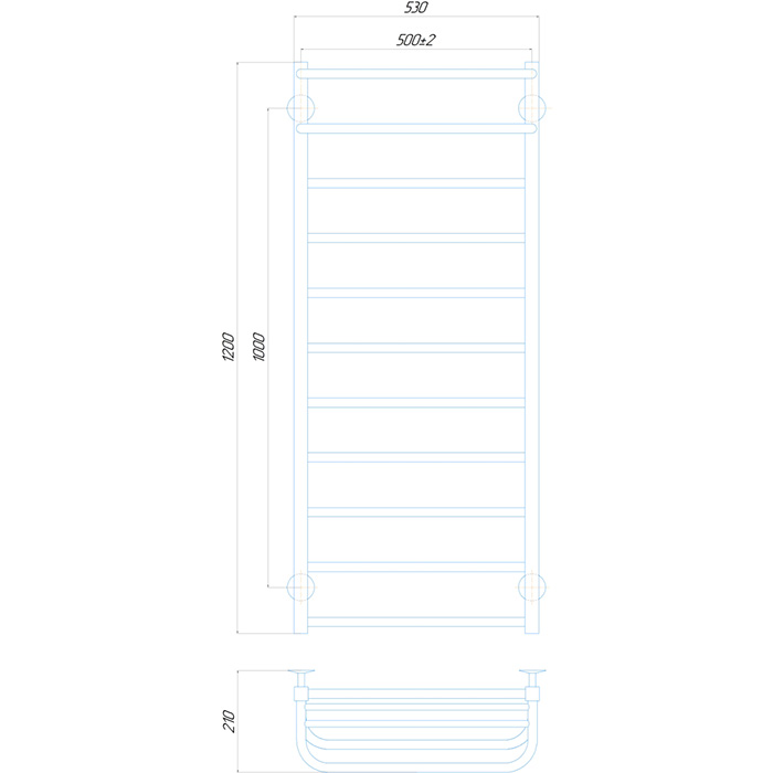| Габарити (мм) | Ширина: 500; Висота: 1000, 1200; Глибина: 210 |