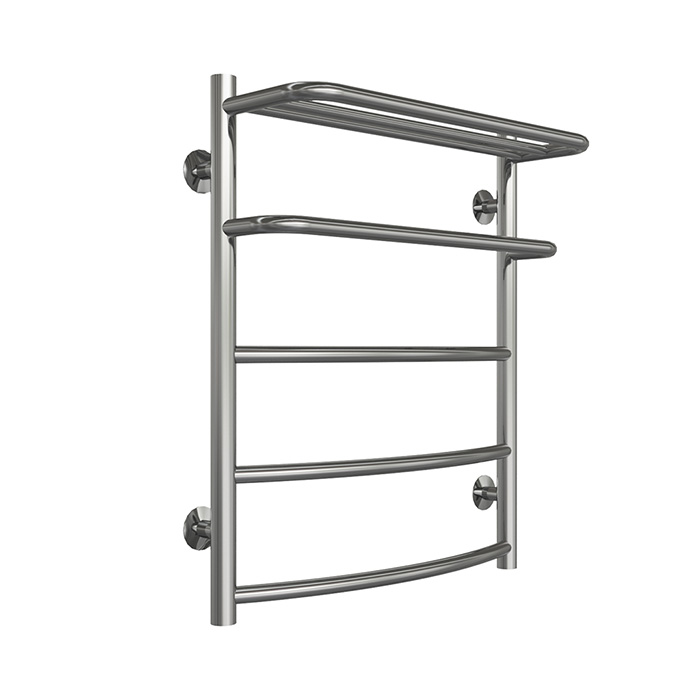 Сушка для рушників з полицею "Готель" виробництва ТМ Deffi - виготовлений з нержавіючої сталі високої якості. Що дозволяє його успішно використовувати як у закритих системах ГВП, так і у відкритих.