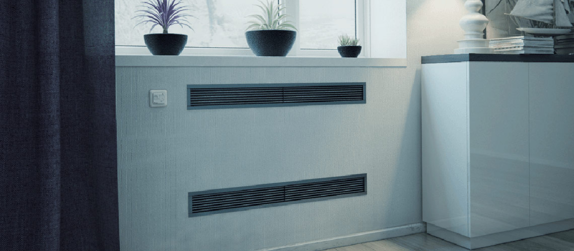 Внутрішньостенні (цокольні) конвектори покликані вирішувати нетипові завдання в опаленні. Такі конвектори, як відомо з назви, вбудовуються безпосередньо в стіну або іншу вертикально розташовану поверхню - простір підвіконня, сходові прогони, меблі та ін. Цей тип обладнання конструктивно дуже схожий; на внутрішньопідлогові конвектори, але головною відмінністю є вид монтажу.
